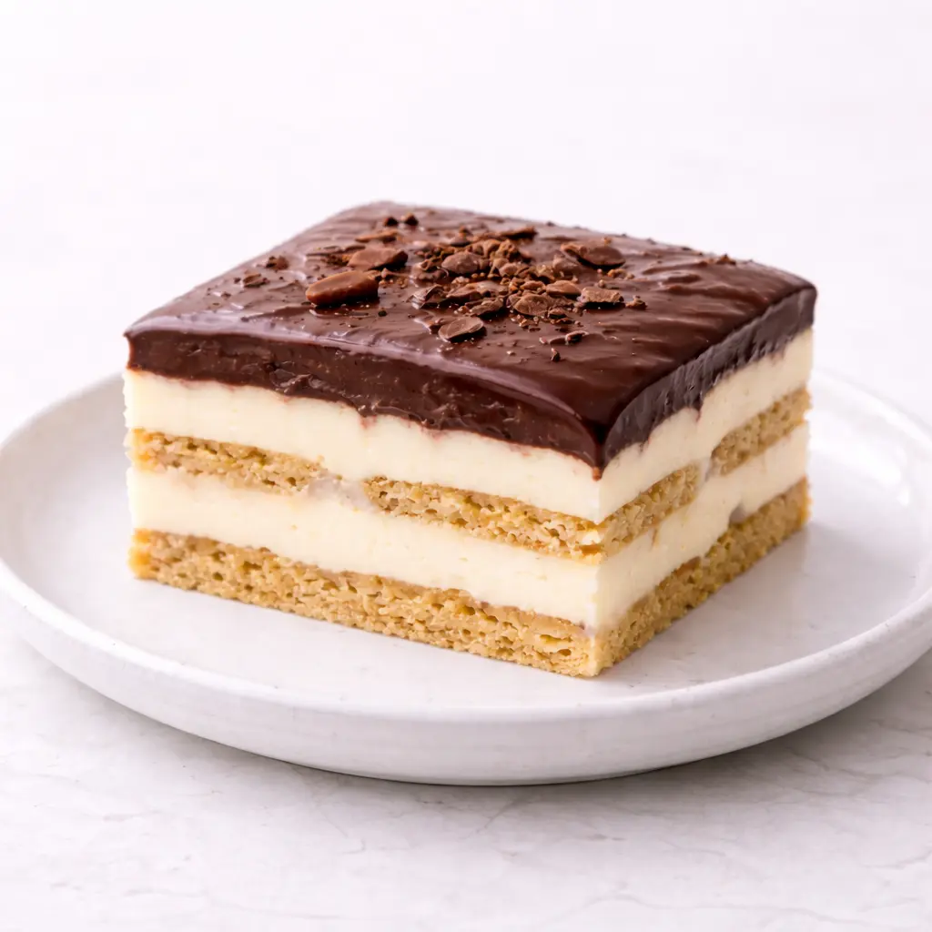 It’s creamy, chocolatey, and layered with graham crackers that soften into cake-like perfection overnight. Every bite tastes like a classic chocolate eclair sweet vanilla filling, rich fudgy topping, and that irresistible soft-meets-creamy texture that feels pure comfort.