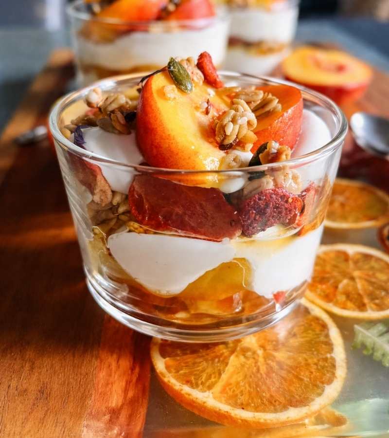 This parfait keeps things simple and flexible. Ripe peaches bring all the sweetness you need, while a small amount of maple syrup ties everything together without overpowering the fruit. The granola adds crunch, and the cream-cheese-infused whipped cream makes each bite feel indulgent but still light.