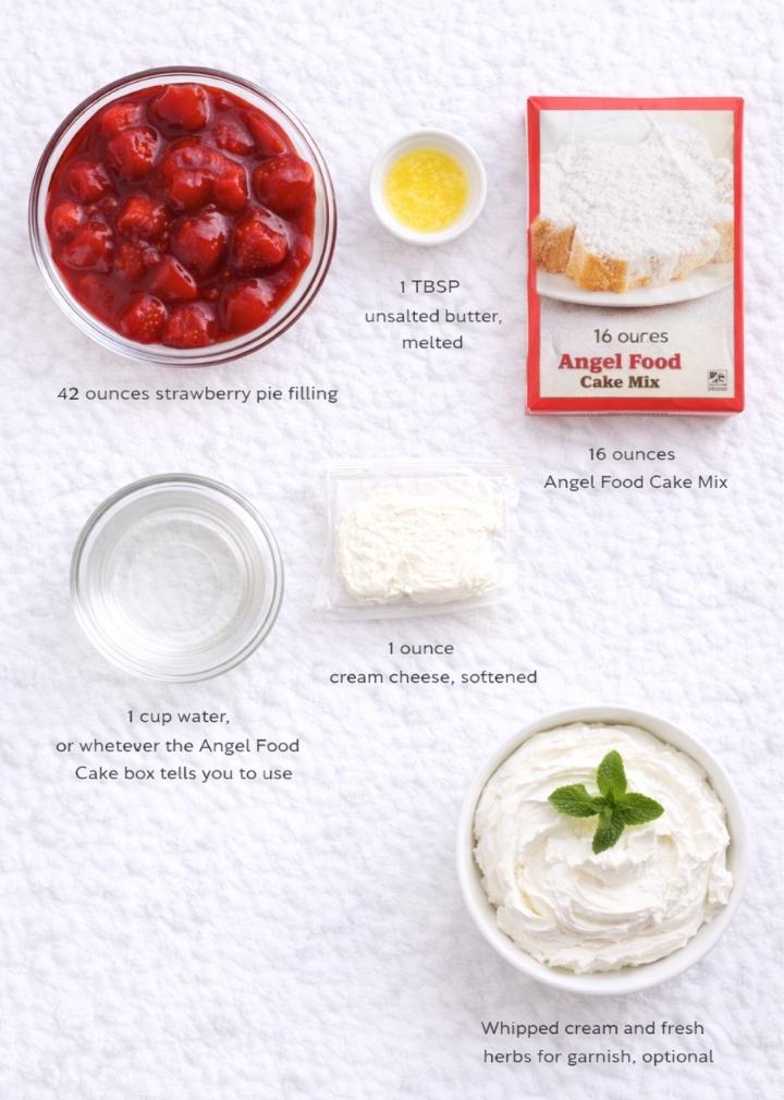 This version leans into the magic of angel food cake, which bakes up airy and soft right over a layer of sweet strawberry pie filling. A touch of fresh citrus zest and juice brightens everything up, giving the dessert that “strawberry shortcake” vibe we all love. Serve it warm or cooled, plain or topped with whipped cream, and you’ve got a dessert that feels like summer in a baking dish.