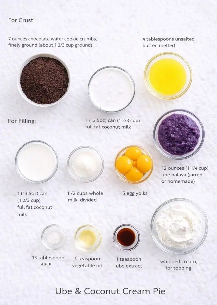If you’re looking for a dessert that feels a little magical the moment you slice into it, this ube and coconut cream pie is exactly that. With its dreamy purple filling, rich coconut undertones, and buttery chocolate wafer crust, it’s the kind of dessert that stops people mid-sentence. Elegant, nostalgic, and just indulgent enough, this pie is a beautiful blend of familiar comfort and something delightfully different.